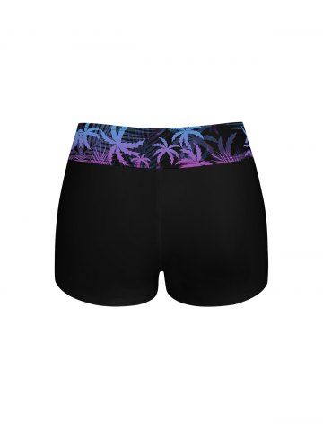 Tropical Leaf Colorful Coconut Tree Print Boyleg Hawaii Tankini Swimsuit(Adjustable Shoulder Strap) - Black - 5x