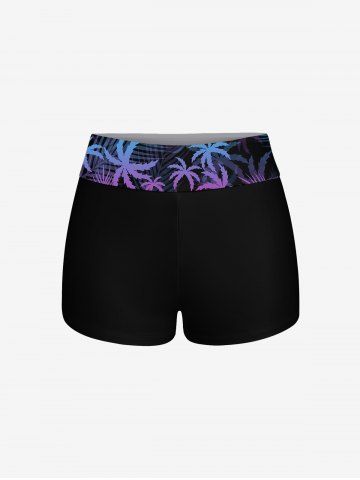 Tropical Leaf Colorful Coconut Tree Print Boyleg Hawaii Tankini Swimsuit(Adjustable Shoulder Strap) - Black - 6x
