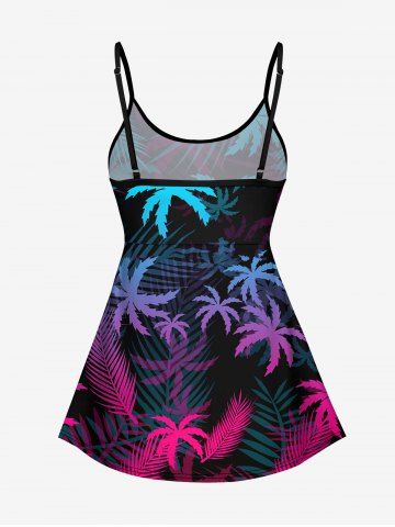 Plus Size Tankinis > Tropical Leaf Colorful Coconut Tree Print Boyleg Hawaii Tankini Swimsuit(Adjustable Shoulder Strap)