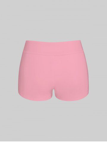 Watercolor Peach Blossom Flower Branch Print Boyleg Tankini Swimsuit - Light Pink - 1x