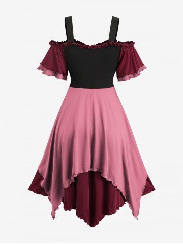 Gothic Plus Size Cold Shoulder Lace Up Layered Handkerchief Asymmetric Corset Renaissance Dress - Light Pink - 4x | Us 26-28