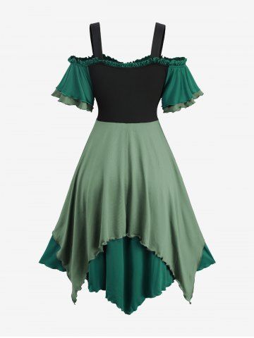 Gothic Plus Size Cold Shoulder Lace Up Layered Handkerchief Asymmetric Corset Renaissance Dress - Light Green - L | Us 12