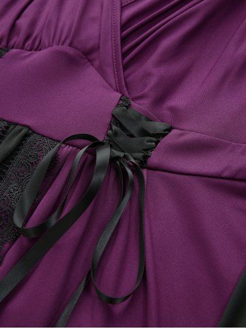 Plus Size Flare Sleeve Lace-up Lace Trim Two Tone Layered Vintage A Line Dress - Concord - 3x | Us 22-24