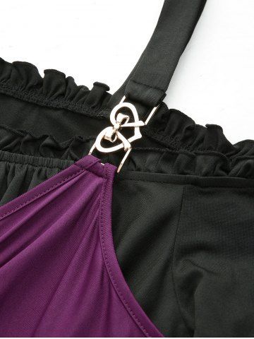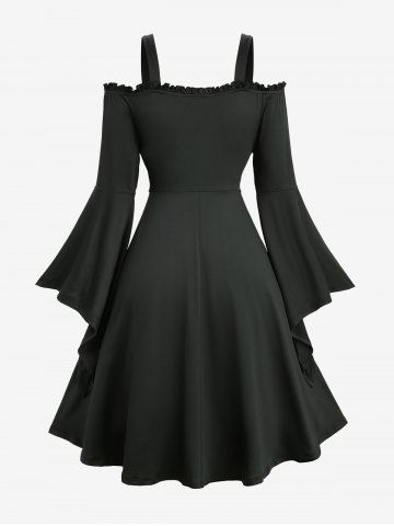 Vintage Dresses > Plus Size Flare Sleeve Lace-up Lace Trim Two Tone Layered Vintage A Line Dress