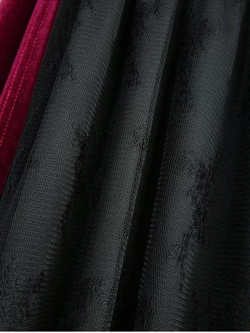 Plus Size Floral Lace Mock Buttons Velvet Vintage A Line Dress - Deep Red - 4x | Us 26-28