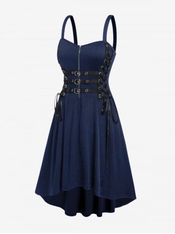 E*****a5Plus Size Grommets Lace Up Buckles Zipper High Low Midi DressColor: BLACK Size: L | US 12very cute. a little bit loose on the shoulder straps but I will have to tighten those up