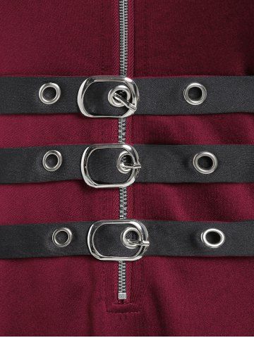 Plus Size Grommets Lace Up Buckles Zipper High Low Midi Dress - Deep Red - 3x | Us 22-24