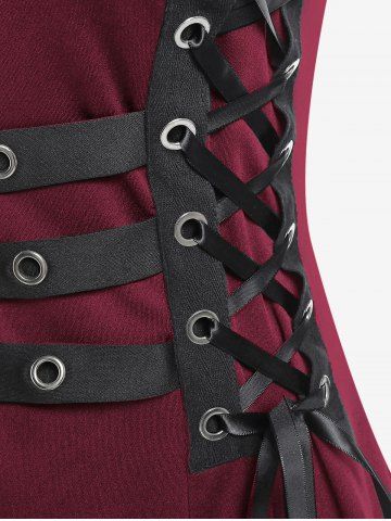 Plus Size Grommets Lace Up Buckles Zipper High Low Midi Dress - Deep Red - 4x | Us 26-28