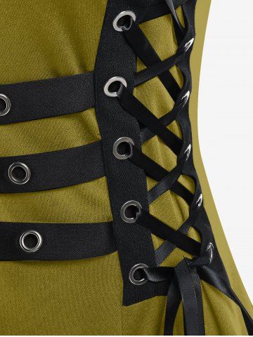 E*****a5Plus Size Grommets Lace Up Buckles Zipper High Low Midi DressColor: BLACK Size: L | US 12very cute. a little bit loose on the shoulder straps but I will have to tighten those up
