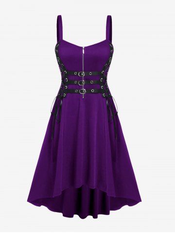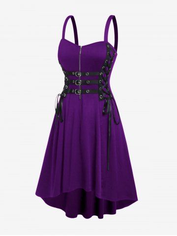 Vintage Dresses > Plus Size Grommets Lace Up Buckles Zipper High Low Midi Dress