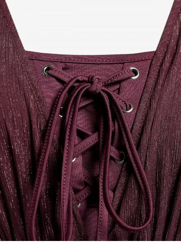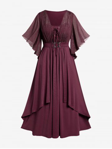 J*****n4Plus Size Lace Up Buckle Grommet Layered Butterfly Sleeve DressColor: CONCORD Size: 2X | US 18-20I rated the fit as true to size, but this is correct for the dress or bottom only (I am a 2X). The top (jacket) is just a tad small for my shoulders and bust, and since it is a separate piece, it rides up. I may try to stitch the two pieces together to make this work. The colour, material, and design otherwise is all quite nice and I am happy with dress portion. It also pairs nicely with a white sweater I ordered on here.