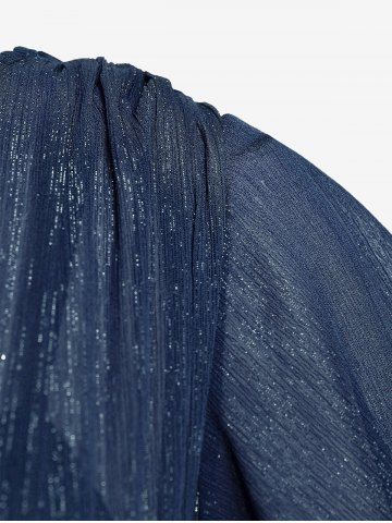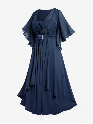 Plus Size Lace Up Buckle Grommet Layered Butterfly Sleeve Dress - Deep Blue - L | Us 12