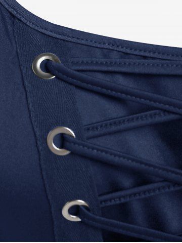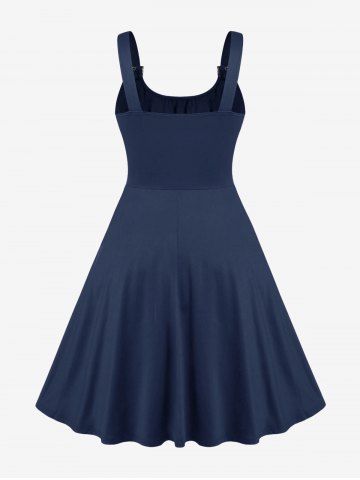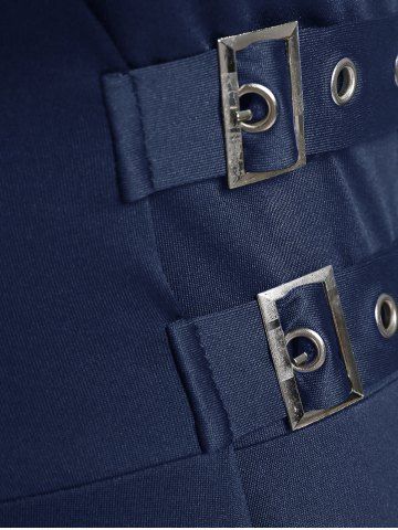 Plus Size Lace Up Buckles A Line Sleeveless Gothic Dress - Blue - 5x | Us 30-32