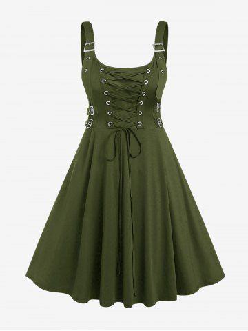 Plus Size Lace Up Buckles A Line Sleeveless Gothic Dress - Deep Green - 2x | Us 18-20