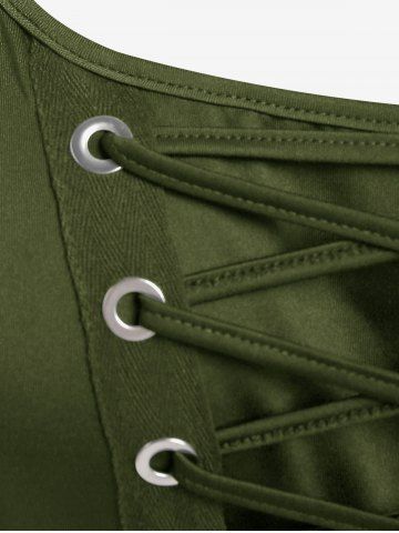 Plus Size Lace Up Buckles A Line Sleeveless Gothic Dress - Deep Green - 3x | Us 22-24