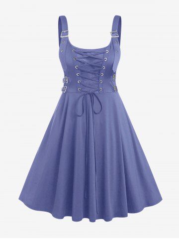 Plus Size Lace Up Buckles A Line Sleeveless Gothic Dress - Concord - 4x | Us 26-28