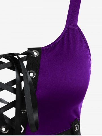 Plus Size Lace Up Grommets Fit and Flare Dress - Purple - 3x | Us 22-24