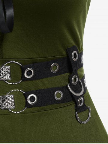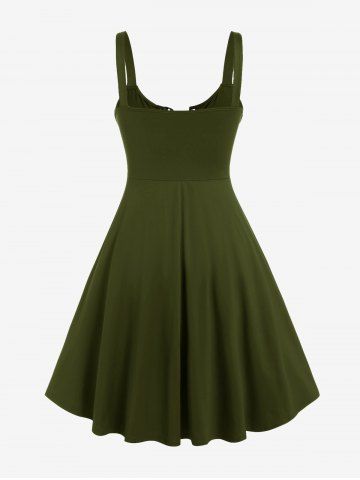 G*****y5Plus Size Lace Up Grommets Fit and Flare DressColor: BLACK Size: 3X | US 22-24Great dress. A-line. Stretchy. Comfy. I get loads of compliments with it. I would size down.