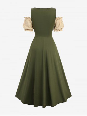 Plus Size Medieval Renaissance Lace Up Plisse Ruffles Cold Shoulder 2 In 1 Vintage Dress - Green - 2x | Us 18-20