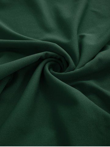 Plus Size Polka Dot Print Mock Buttons Heart Buckle Turn-down Collar Patchwork Ruched Vintage A Line Dress - Deep Green - 3x | Us 22-24