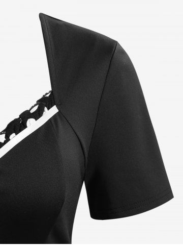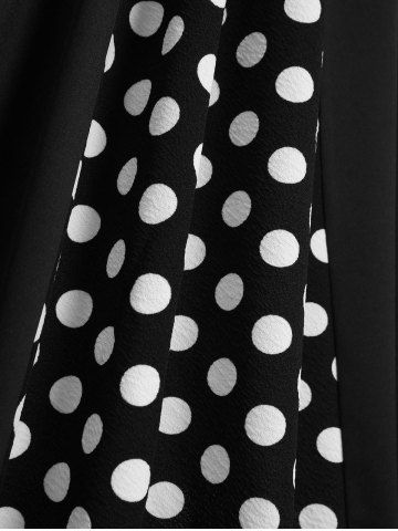 Plus Size Polka Dot Printed Patchwork Button A Line Vintage Dress - Black - 4x | Us 26-28