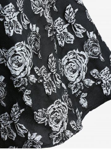 Plus Size Rose Flower Embroidery Jacquard Lace Trim Vintage A Line Tank Dress - Black - 5x | Us 30-32