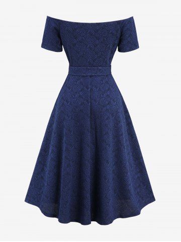Plus Size Rose Flower Jacquard Embroidery A Line Dress with Removable Belt and Shoulder Strap - Blue - 2x | Us 18-20