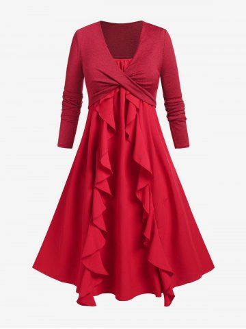 R*****a5Plus Size Valentines Flounce Twist Solid Sleeveless A Line Party Midi DressColor: RED Size: 4X | US 26-28True to size. Perfect to dress up or down.
