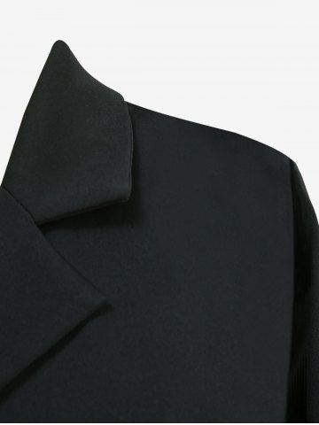Vintage Dresses > Plus Size Solid Ruched A Line Cami Dress and Lapel Collar Button Long Sleeve Coat Set