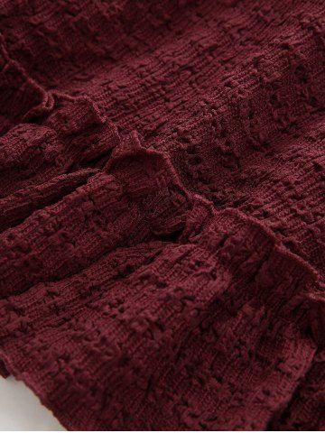 Plus Size Textured Crinkle PU Strap Buckle Grommet Belted A Line Solid Dress - Deep Red - 5x | Us 30-32