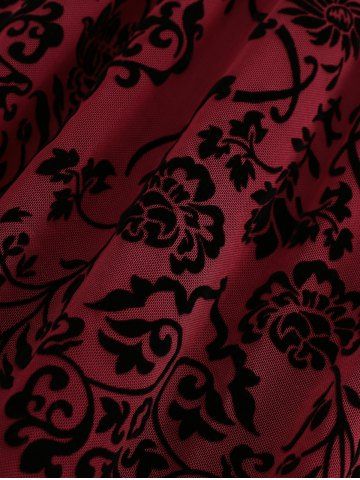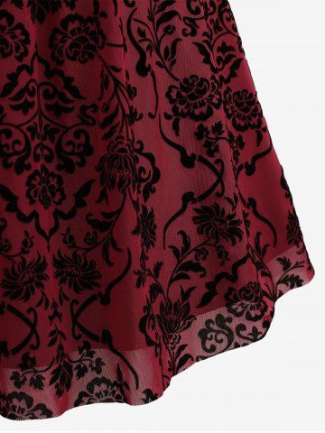 Plus Size Vintage Flower Layered Ruched Mesh A Line Dress - Red - 1x | Us 14-16