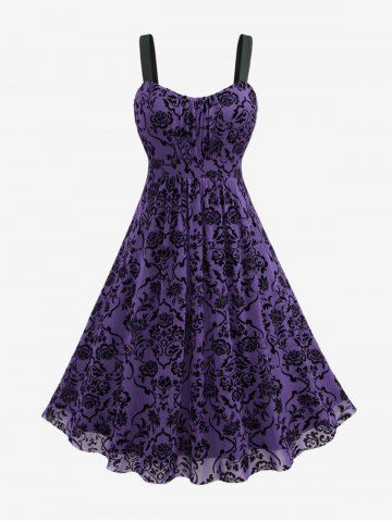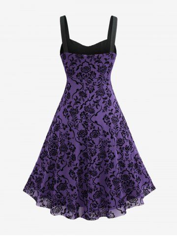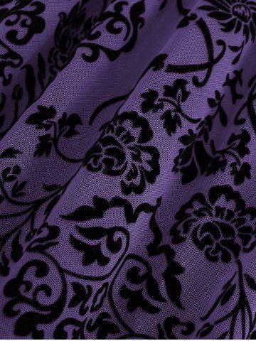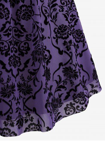 Plus Size Vintage Flower Layered Ruched Mesh A Line Dress - Purple - M | Us 10