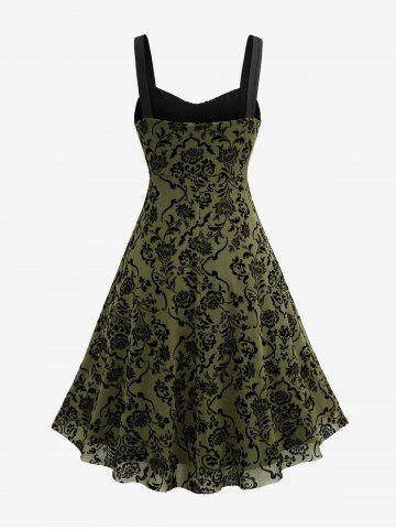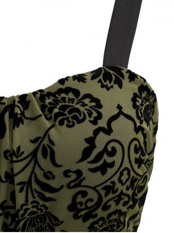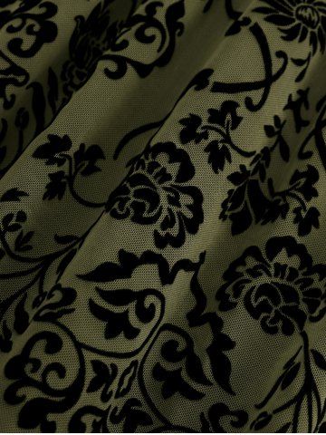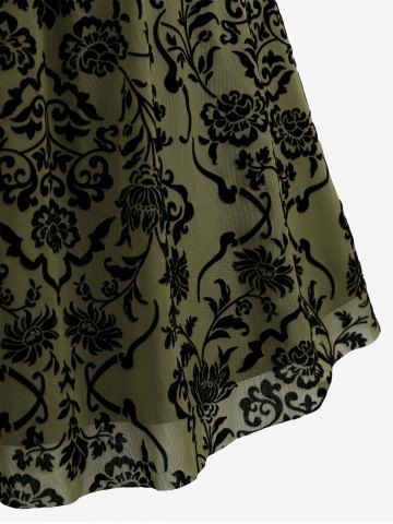 Plus Size Vintage Flower Layered Ruched Mesh A Line Dress - Deep Green - M | Us 10