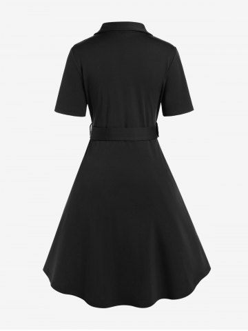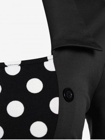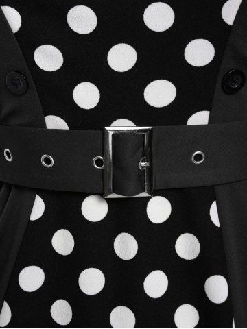 Plus Size Vintage Polka Dots High Rise A Line Dress with Buckles Belt - Black - L | Us 12