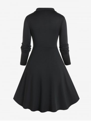 Plus Size Vintage Sweetheart Neck Plaid Grommets Flare Dress - Black - 3x | Us 22-24