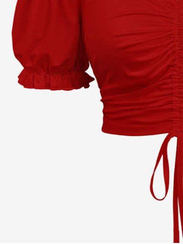 Plus Size Cinched Ruched Ruffles Cold Shoulder Cami Top - Red - 5x