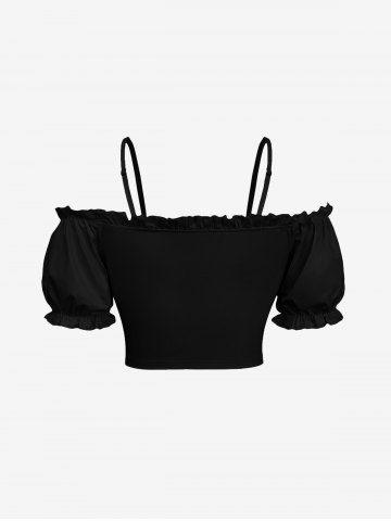 Plus Size Cinched Ruched Ruffles Cold Shoulder Cami Top - Black - L