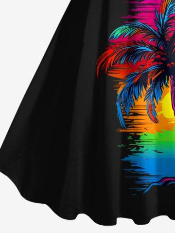 Plus Size Colorful Coconut Tree Sun Print Hawaii Tank Dress - Black - L
