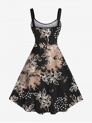 Plus Size Flower Leaf Paint Splatter Print Hawaii Tank Dress - Black - 5x
