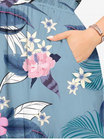 Plus Size Flowers Leaf Tropical Print Split Hawaii Midi Dress - Light Blue - 2x