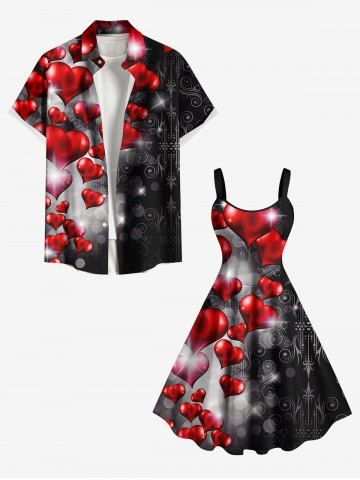Plus Size Glitter Heart Balloon Print Valentines A Line Dress - Black - L