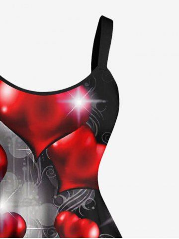 Plus Size Glitter Heart Balloon Print Valentines A Line Dress - Black - 3x