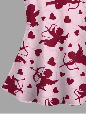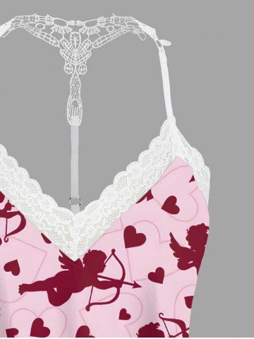 Plus Size Heart Cupid Print Valentines Lace Trim Crochet Pajama Top - Light Pink - M