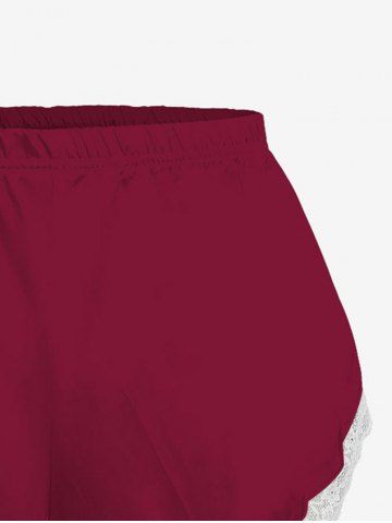 Plus Size Lace Trim Solid Pajama Shorts - Red - Xs