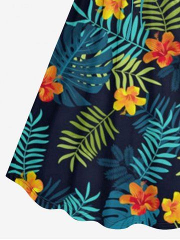 Plus Size Troipical Flower Leaf Print Cinched Hawaii Dress - Black - 6x