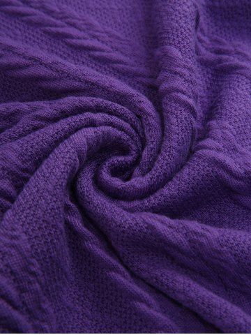 Plus Size Turndown Collar Cable Knit Sweater and Paisley Floral Flocking Mesh Cinched Tank Top - Purple - 1x | Us 14-16