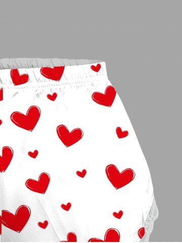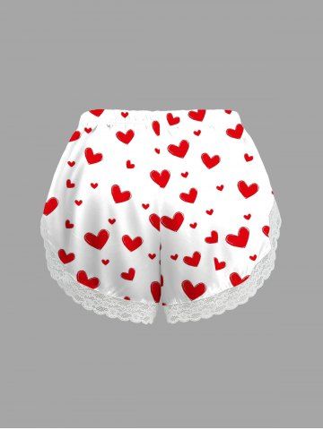 Plus Size Valentine's Day Heart Print Lace Trim Slip Pajama Shorts - Red - 2xl