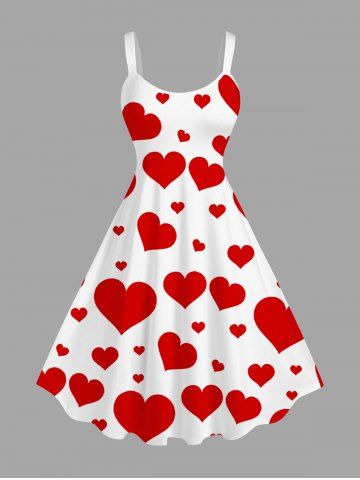 Plus Size Valentine's Day Heart Print Tank Dress - Red - 1x