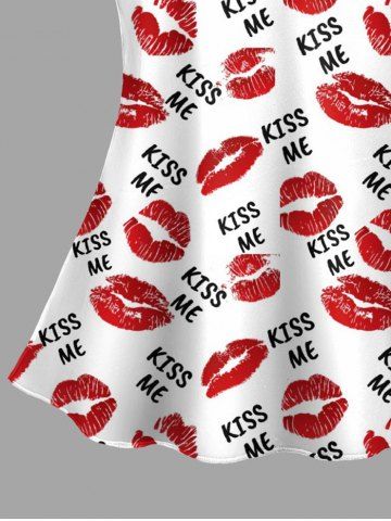 Plus Size Valentine's Day Kiss Me Lips Print Lace Trim Strappy Slip Pajama Top - White - 6xl