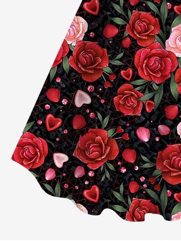 Plus Size Valentine's Day Rose Flower Heart Floral Buckle Belt 3D Print Tank Dress - Red - Xs
